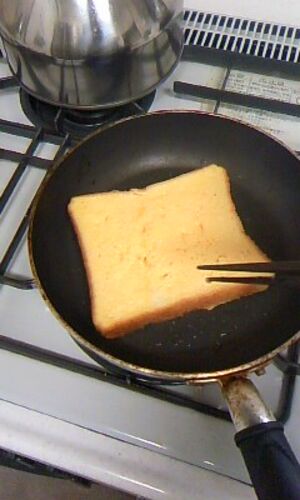 今日は練習も無いので、 ゆ~っくり出来る朝…♪ 相方が起きてくる様子もないので、 『french toast』…なるものを作ってみた。 自分でガスコンロを使うのは久しぶり。 (台所 = 換気扇 = 煙草を吸うところ…の私でして…笑) 「油って、どこにあるんや?」 「…