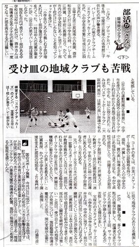 今日の産経新聞に うちのチームの記事が載っていました。 公立中学校の部活の減少の中で、 一番に『男子バレーボール』というところに 目を向けてくれたようで。。。 あまり明るい記事でもないですよ(笑)。 実は自分は…そんなに悲観的では無く、 「ま、何…