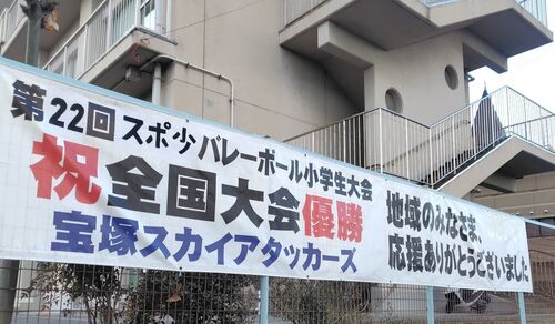 少しずつ…腰が動くようになり、 油断は禁物なのですが あらためて『健康』や『当たり前』に 感謝を感じる今日このごろ… ホームの学校のフェンスに 全国優勝の横断幕をはってくださいました。2年前に 全日本大会で 優勝したときに作ったものなので、 よく見る…